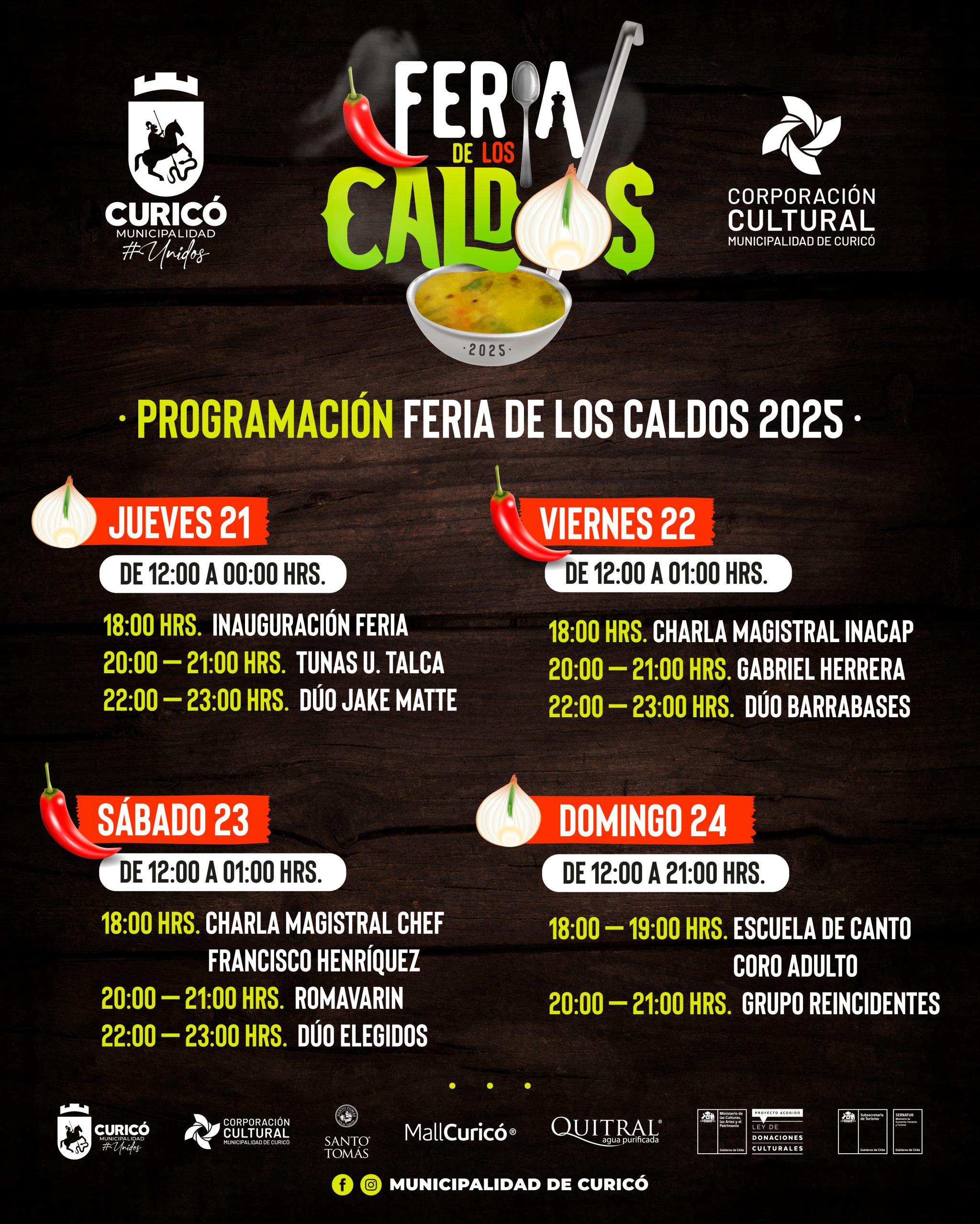 - Domingo 24: 12:00 a 21:00 hrs.